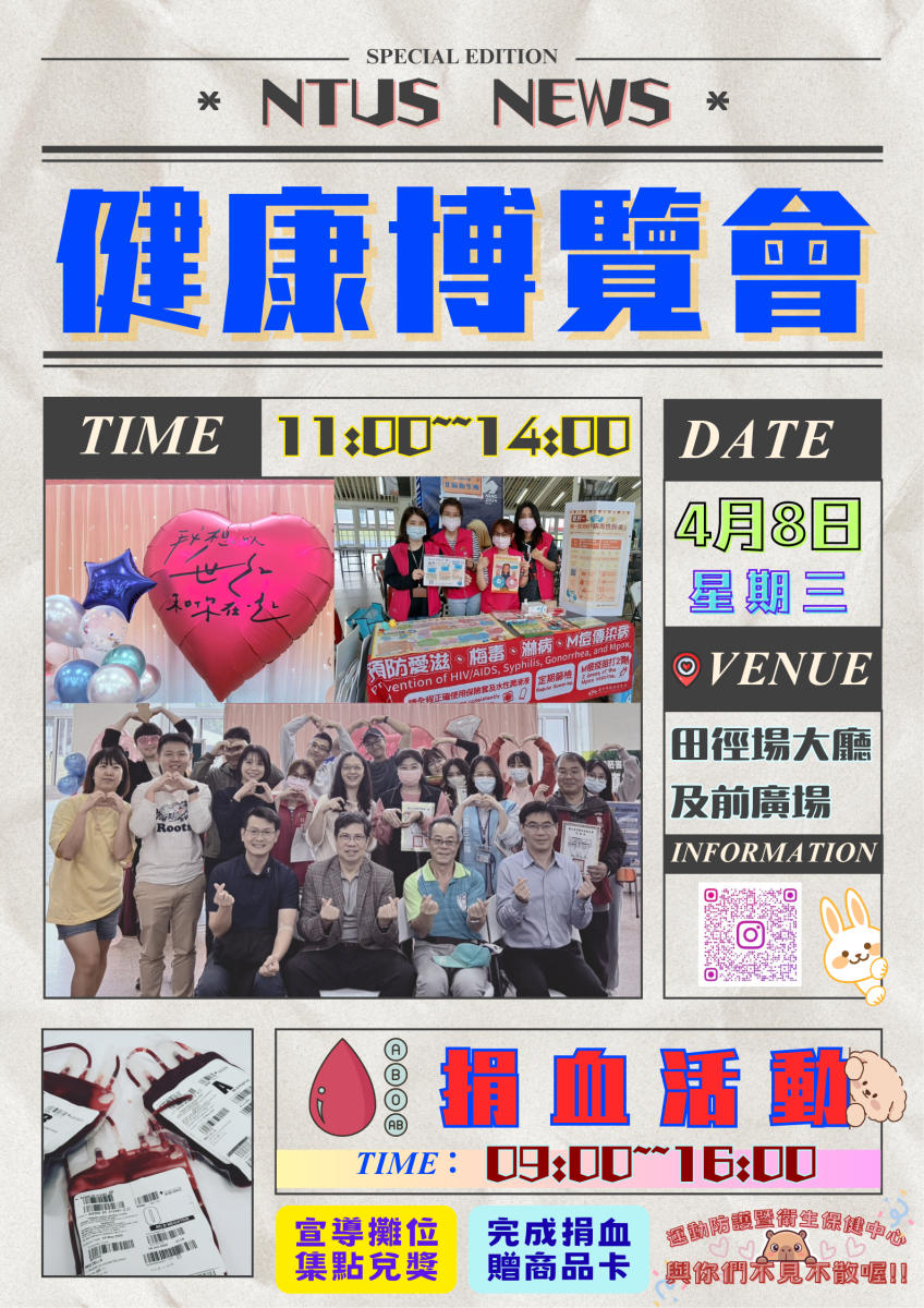 【活動快訊】健康博覽會暨捐血活動~~4月8日閃亮登場!!!