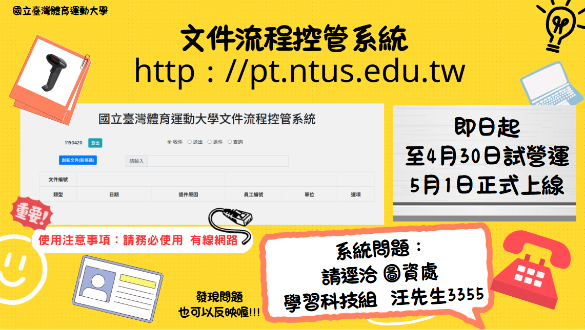 【重要公告】校內文件流程控管系統網址及相關說明。