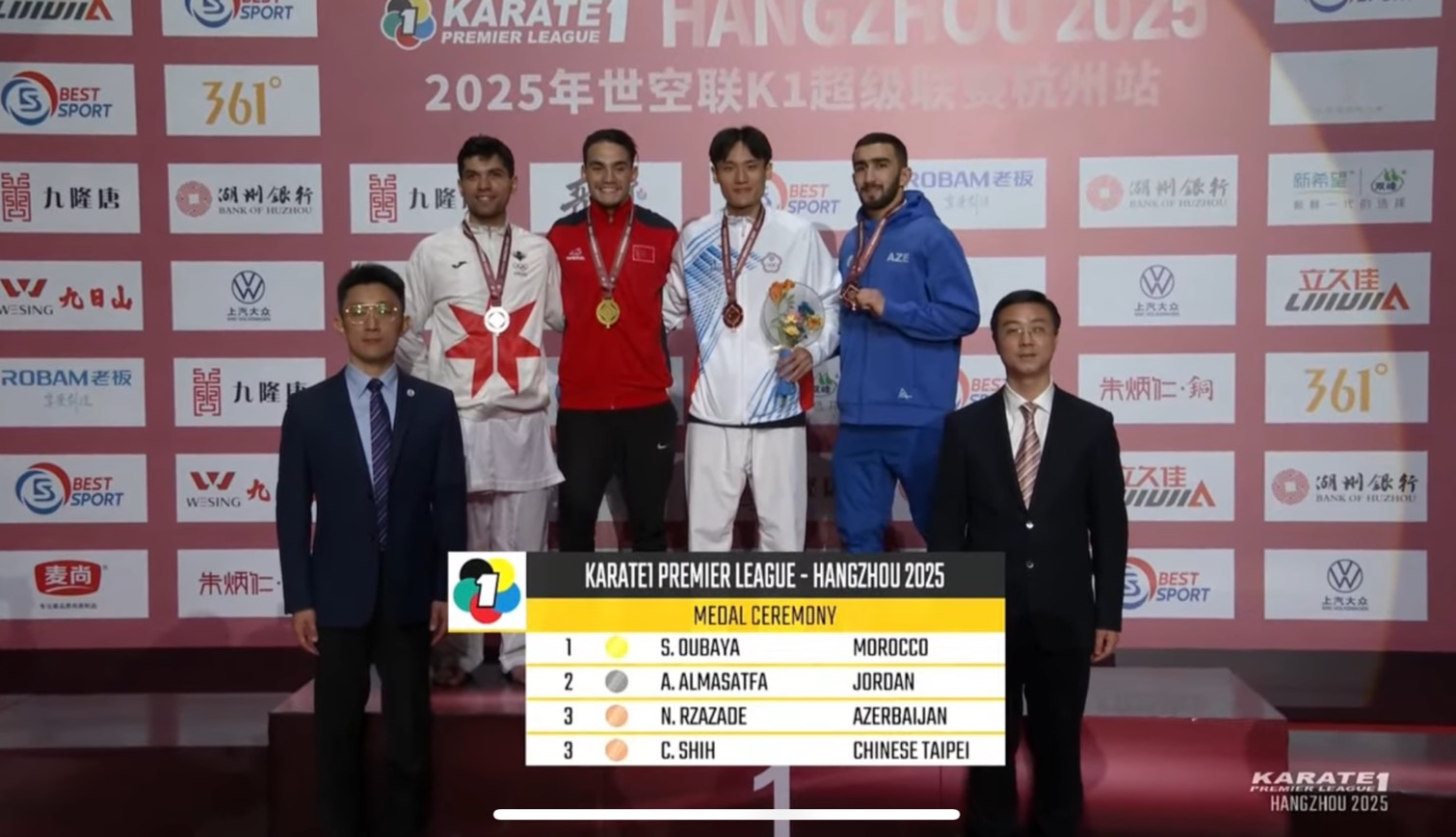 ☆恭喜☆本校臺灣體大空手道隊石政中選手榮獲2025年杭州世界公開賽男子-67公斤銅牌